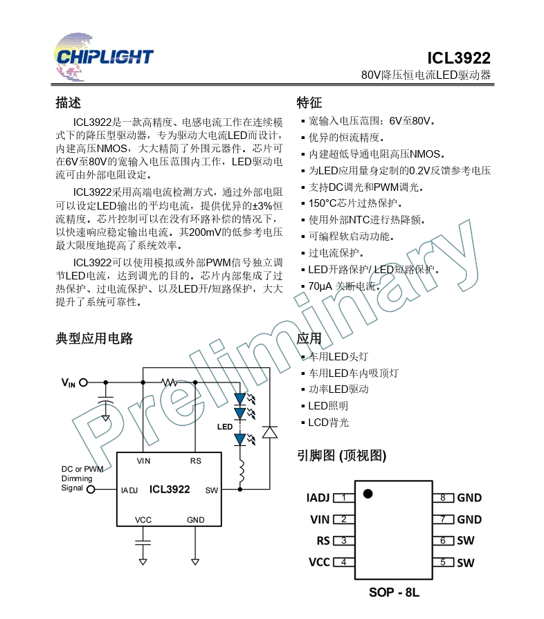 式下的降壓型驅(qū)動(dòng)器,專為驅(qū)動(dòng)大電流LED而設(shè)計(jì),