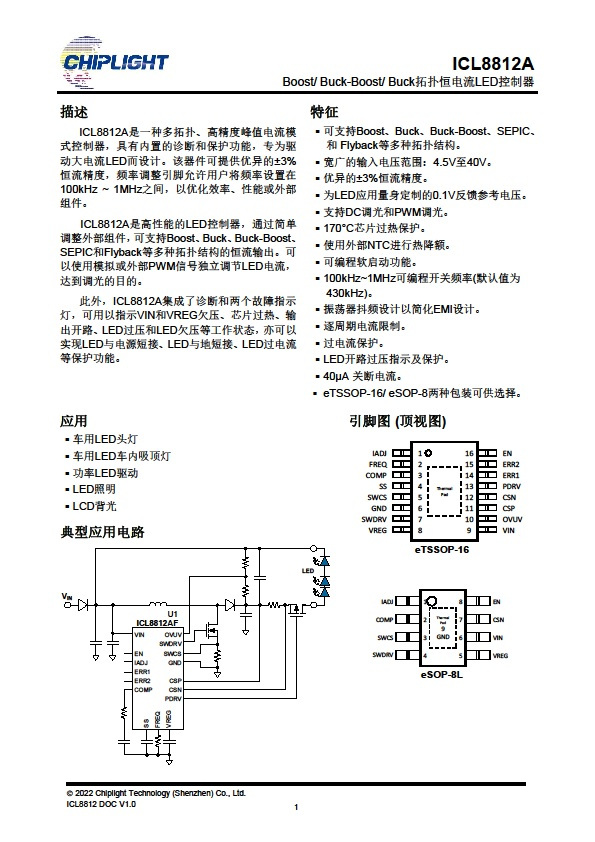 ICL8812AE是一種多拓?fù)?、高精度峰值電?br>模式控制器,具有內(nèi)置的診斷和保護(hù)功能,專為